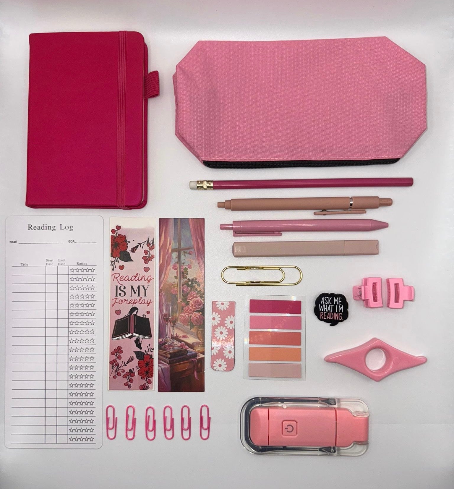 Our Essential Bookish Bundle is a beautiful set made for all book lovers. In this bundle you will find handpicked mix of essentials like a hard cover notebook, pens and accessories in coordinating tones.